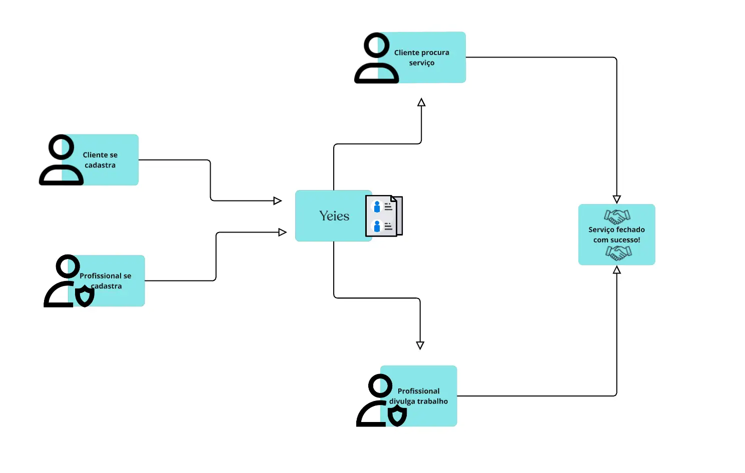 A partir de agora não haverá mais dificuldades para encontrar um profissional e divulgar os seus serviços! Nossa plataforma cuida de todos os detalhes para que você consiga alcançar seus objetivos e até mesmo se tornar seu próprio chefe! Intermediamos os serviços distribuindo oportunidade e solução! Veja o esquema a seguir e entenda como funciona nossa plataforma.